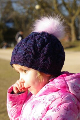 Krokus – Crocus, a sure sign that spring is near. Spring girly hat, for cables lover. SIZES S (M, L)/ Child (Teen, Adult) to fit head 48-50 (52-54, 56-58) cm/ 19-20 (20.5-21.5, 22-23)” around. MATERIALS 1 skein (100g) of any sport weight yarn, which gives you correct gauge. Sample was made with Malabrigo Yarn Arroyo100% Merino wool, color 247 Whales road. RECOMMENDED NEEDLE SIZES US 3/3.25 mm circular needle US 5/3.75 mm circular needle GAUGE 26 sts x 30 rows over 10 cm/4” in cable pattern with needle US 5/3.75 mm. OTHER Cable needle, stitch marker, tapestry needle for weaving.