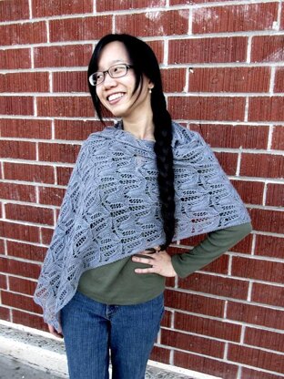 Kuàilè means “happiness” or “joy” in Chinese, an apt description for the person who inspired this shawl! Based on the Frost Flowers pattern, this shawl is knitted in two pieces and grafted in the middle, creating lovely scallops on the edge and a unique oval pattern in the center.