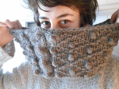 This cowl, all textured with its bobbles and delicate cables, is inspired by the kumquat tree, with its slightly acid fruits and well drawn leafs.