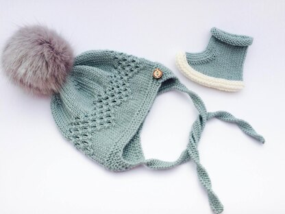 The construction is totally seamless. The earflaps are knitted first and then joined with the main body of the hat. The lace part is both written and charted.