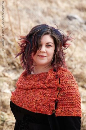 Shown In: Wooly Wonka Fibers ‘Nimue Sock’, (435 yards/398 meters; 50% merino, 50% silk; 3.53 oz/100 grams per skein). 2 skeins of Bonfire. Buttons sourced from The Quarter Stitch.