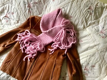 Tons of cords on the La Boheme Scarf adding style and flair. Crocheted entirely in one piece with no seams. Simple crochet stitches throughout. CARON BRAND ONE POUND YARN USED IN THIS PATTERN.
