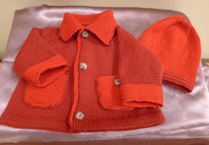 This little jacket is the perfect grown up style coat for your little Prince. Featuring contrast collar, cuffs and pockets it is an ideal garment to pop on for a play in the park on those cooler Autumn days. A roomy fit you will be able to easily fit a few layers underneath to keep your little person warm. A matching hat complete the ensemble. Knitted in Debbie Bliss Baby Cashmerino it has a lovely soft feel and is not too heavy. This yarn comes in a wonderful array of colours so you could easily whip one up for your little Princess as well.
