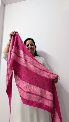 La Rosae Blooms Shawl In French La Rosae Blooms signifies, blossoming of a rose flower. Shawl is inspired with little rosebuds. Lace design is looking like blooming rosebuds. Lace pattern is adorable,easy to memorize and engaging too. This is an Asymmetrical Triangle Shawl, beautifully drapes on shoulders.