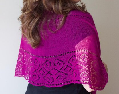 The shawl suggests part of one of the domes and the lace border is adapted from the curving bands of designs on the ceiling.