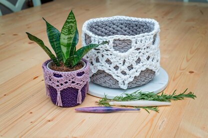 Who doesn't love a cute storage crochet basket pattern? I know I'm constantly looking for things that help me organize my home and keep things pretty. With a new puppy in the house, I wanted a basket for all of her new toys. I also wanted a couple of different sizes, although I ended up keeping the purple one for my crochet hooks instead of her puppy treats.