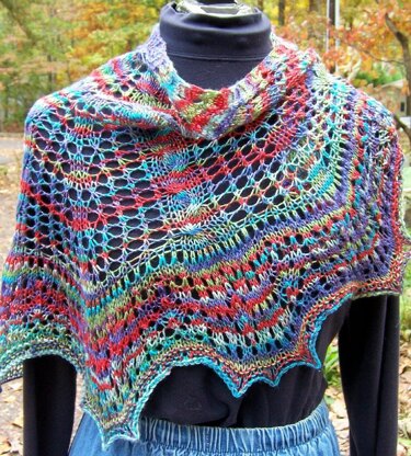 Worked in a sparkly sock yarn, this shawl is both fun to knit and fun to wear.