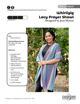 Lacy Prayer Shawl in Cascade Yarns Whirligig - DK629 - Downloadable PDF