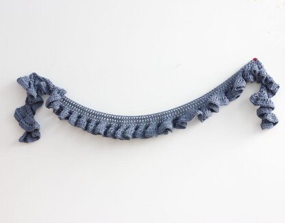 Pattern for a lacy ruffle scarf. This scarf can be crocheted in almost any weight yarn. It can easily be made wider or longer. You can crochet a small neck warmer or a substantial scarf.