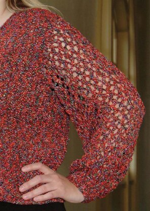 The lacy sleeves on this lovely sweater may look complicated, but the stitch pattern is very simple and it works up quickly. Use a soft yarn for the drapey fit shown here, or a stiffer yarn if you prefer more body.