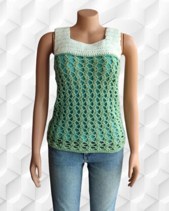 The crochet lacy summer top is the perfect top for the spring and summer weather. It's a very easy pattern that even for crochet beginners. It uses simple crochet stitches to achieve this lacy look. It contains instructions for 5 sizing options. 30-34 (36-40,42-44, 46-48,50-52) Bust size in inches.