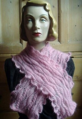 The scarf in the photograph was knitted in rose pink Debbie Bliss Angel on size 3¾mm (9) needles and took almost 2 x 25gm balls (approximately 400m). Any 3/4ply lightweight soft yarn could be used instead, but more yarn may be needed and the size will vary according to the thickness of yarn used.