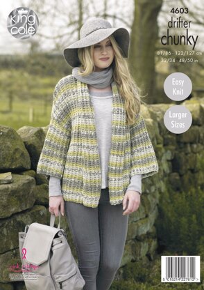 Ladies Jackets in King Cole Drifter Chunky - 4603 - Downloadable PDF is a Intermediate Knitting pattern by King Cole, available as a Downloadable PDF and includes instructions in English. Super fun to make, this pattern could be your next masterpiece!