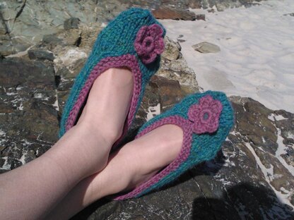 Ladies knitted cosy ballet slippers