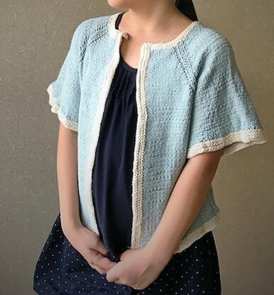 Lady Jacket is a bolero jacket for every woman. Sizes range from 6yrs to adult 2XL size. Main body is constructed with linen stitch, which makes the garment thicker and tweedy. And the neckline, bottomline and front bands are worked in garter stitch in a contrasting color.