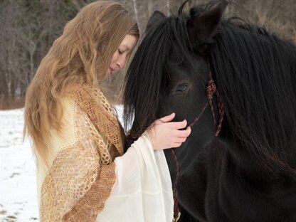 Eowyn is the unsung hero; the woman who destroys the Nazgul King. She is a sheildmaiden, a healer, and a ruler. The transitions of her life are played out across this shawl.