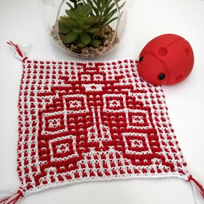 Knitted coasters are functional to protect your table, quick to make and a great way to use up leftover yarns. Add a splash of colour and fun to your everyday life or when socializing with friends. Knit up a set of six coasters all in the same two contrasting colours or choose different colours for each coaster. The Putukad (Bugs in Estonian) set of coaster patterns contains patterns for mosaic knitted Honeybee, Dragonfly, Fly, Butterfly, Ladybird and Spider. Which one you would choose for your best friend?