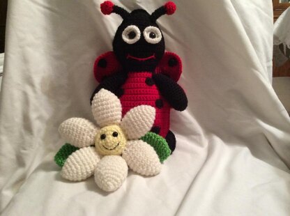 This is the third and final installment of the ladybug series, the first being the ladybug wall hanging and the second is the ladybug lovey blanket. No ladybug should be without a flower as a playmate :)
