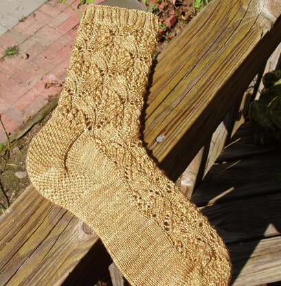 This is a lace sock that can be knit from the toe up or the cuff down, with a slip stitch heel flap. There are 2 sizes, Small (60 stitch leg) and Medium (64 stitch leg). There is an option for doing the toe of the toe up sock in an eye of partridge stitch. - Note - this pattern is VERY stretchy