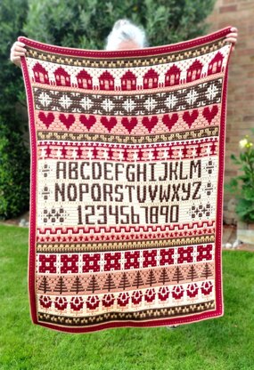 Inspired by Cross Stitch samplers, Lakenham was designed as a 6-part CAL (crochet along), worked using overlay mosaic crochet, and finished off with an envelope border to hide the loose ends.