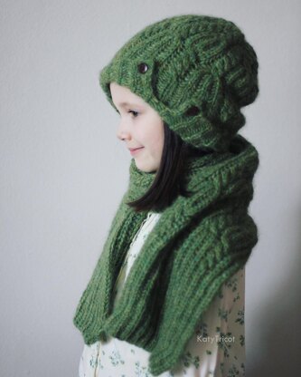 This soft scarf and hat set knit in a combination of the brioche rib and syncopated cables is the perfect accessory for the cold winter months. The hat begins at the bottom with long brioche rib followed by the Lantern Brioche pattern through body and crown. First, brim is worked flat to form a split and then in the round, with possibility to fold it up and wear the hat fitted for ultra warmth or slouchy with unfolded brim. A simple end to end scarf is knitted flat back and forth, beginnng and ending with brioche rib borders, which are connected by a series of Lantern Brioche motifs.