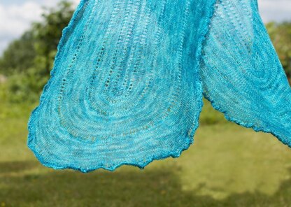 A lovely, airy laceweight in an interesting color does not need an intricate stitch pattern to show off its virtues! While knitting up this shawl, you can perfectly relax. No purling required, and apart from the occasional yarn over or knitting two together there are no special stitches involved. The construction is a stretched circle, simple but elegant. Using only 100 grams of yarn, this shawl is unusually big and versatile: Spread it out and lay it over your shoulders to keep warm, or fold it up and wrap it around your neck as a scarf. “Lapislazuli” is named after this famous blue gemstone because my son Edgar (age 9) had read about it in one of his books and was really keen on naming my next blue design. Have a fun, relaxing time knitting!
