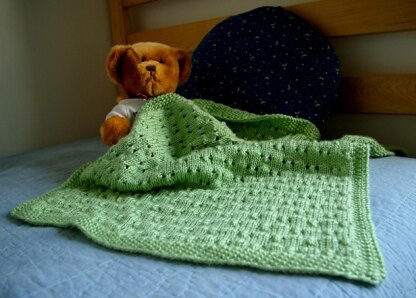 This blanket, like most of mine, is available in two sizes. The smaller size is great for bassinets, carseats, and “lovies.” The full size works great in a crib or as a floor blanket.