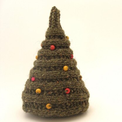 Knit your own Christmas tree! It's small (only 7.5”) and portable and doesn't drop needles. It's also fun to decorate with beads and use as a table decoration.