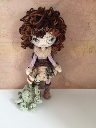 Pattern is available in English US terminology. instant digital download after payment. Size: The doll is 8 inches tall. Depending on hook/yarn used. Skill level is Intermediate/ Advanced Beginner Basic skills of crochet are needed.*Crochet wrong side out.*She is made from feet up (no sewing) Detailed Pattern with photos and links.