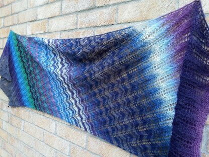 Las Ramblas combines two self-striping yarns with a Missoni inspired lace pattern for an easy stole. Worked on the bias, this modern minimalist stole is perfect to wear as a scarf or as a shawl across your shoulders.