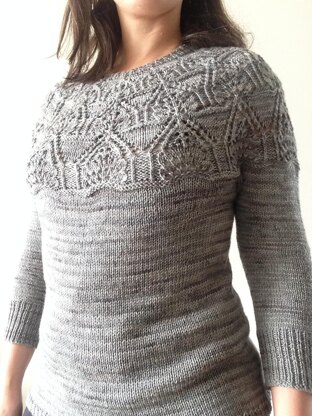 The Lastarria Sweater is an interesting lace sweater pattern, worked in the round from bottom up. The classic round yoke shape with french sleeves gives it a very delicate look, making this a great versatile piece to any wardrobe.