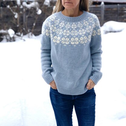 The fit of this sweater is intended to be approximately 2-5 inches larger than your actual chest measurement, but of course you should choose a fit that suits your preference. A schematic diagram is provided showing the key finished measurements to help you choose a size. I knit my sample with about 7 inches of ease, so it is quite roomy!