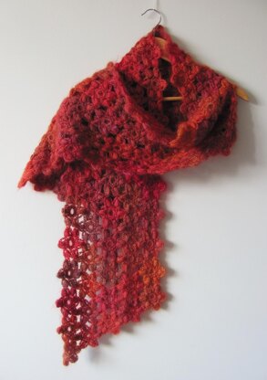 Scarf is made up of motifs joined as-you-go. Pattern is both written and charted, skill level is intermediate.