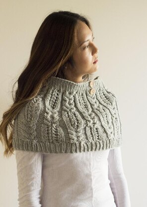 An unexpected mix of cozy cables and delicate eyelets cascade themselves over the fabric of this matching hat and cowl set, resulting in a pleasing and serene mixture of shape and texture.