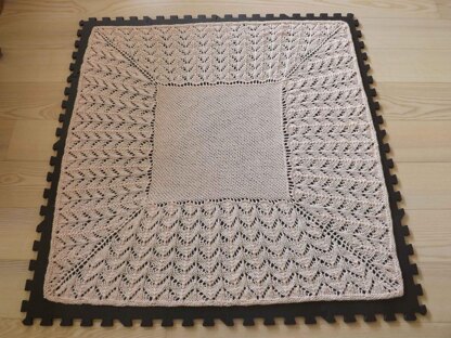 The Late Summer Baby Blanket is a baby Blanket that has a garter stitch middel, a lace pattern and a garter stitch edge. The blanket is knitted in one piece starting at the middle of the blanket.