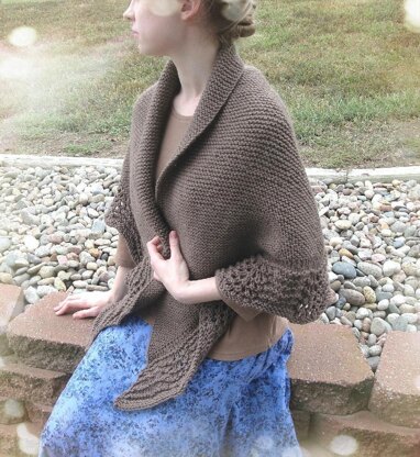 A pretty chocolaty coffee brown shawl, with a scallop edge like swirls in your cup... The best way to have your coffee, first with your knitting, then wrapped in your shawl!