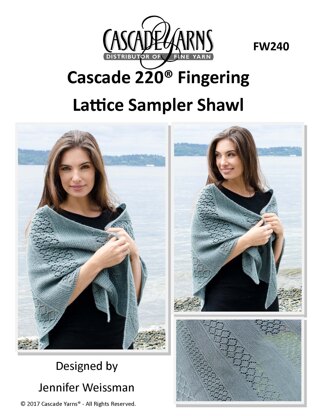 Lattice Sampler Shawl in Cascade 220® Fingering - FW240 - Downloadable PDF is a free Intermediate Knitting pattern by Jennifer Weissman, available as a Downloadable PDF and includes instructions in English. Super fun to make, this pattern could be your next masterpiece!