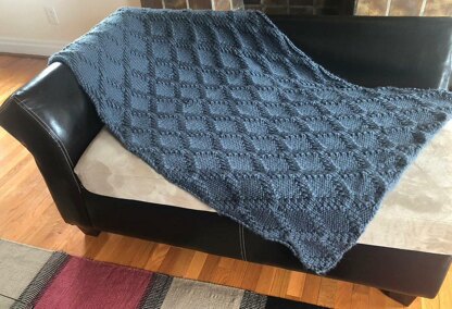 This Throw Blanket features an easy to work eye-catching lattice pattern. Generously sized – at approximately 40”x 64”, you will love this throw on a sun room love seat, folded at the foot of a bed or draped over a sofa. Work it using a sumptuously soft, warm and comforting Super Bulky Yarn and make it your best friend throughout the cold seasons.