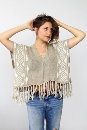 With simple and sophisticated geometric colorwork and an easy construction, this cropped poncho, or ponchette as I like to call it, is a must have for summer. The lightweight nature and relaxed fit is easy to throw on over a bikini for a day at the beach or it can be topped over a camisole for more coverage.
