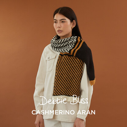 Enhance your colourwork skills with Laurel from Debbie Bliss. This scarf, knitted in Cashmerino Aran using slip stitches, is perfect for those new to this technique. With slip-stitch knitting, you’ll work with one colour at a time, creating a striking pattern through the slipping of stitches. The slip-stitch pattern is provided in written format only. This scarf offers plenty of scope for colour experimentation—stick with the elegant neutrals as featured, or choose something bolder to make a statement!