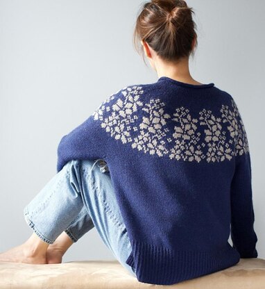 Lauren is a stranded colorwork sweater with a floral yoke that looks equally beautiful with a dark or light background color. The relaxed silhouette and split hem spell both comfort and style. Adding to the comfortable fit, the back neck is raised with short-rows. Started from a provisional cast-on and worked in the round, the yoke is knitted bottom up while the body and sleeves top down – allowing you to easily adjust the height of the neck and the length of the body and sleeves.