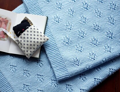 Laurence is a perfect blanket for the special little one. A simple knit with an eyelet stitch pattern which, depending on how you orient the blanket, translates to dainty blooms, whimsical abodes or playful arrowheads. While the sample is knitted in DK weight yarn, the blanket is highly scalable and can be made with any yarn weight. Why not make a bigger lap blanket to baby yourself?