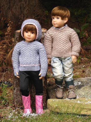 Laurentia ~ a Unisex Textured Stitched Sweater and Ear-Warmer knitting pattern designed to fit 18” slim all vinyl girl/boy dolls like the Kidz n’ Cats® series, & comparable sized dolls that share the same body type