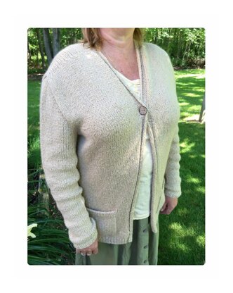 Laurie is a comfy cardigan with a simple button closure. Ruched gathering on the shoulders adds a special touch.