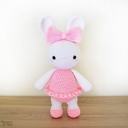 English Pattern Only. This pattern uses US Crochet Terms. The file contains a chart to show the conversions to UK Crochet Terms. Make your own Laurie the Ballerina Bunny with this CROCHET PATTERN. The pattern includes instructions on how to make a cute rabbit. This PDF pattern includes 9 pages with step by step instructions and photos, so you can crochet your own toy. Finished Laurie is about 14" (35 cm.) tall if you use worsted weight yarn and a 4 mm. crochet hook. For this pattern you need to have basic-intermediate crochet and amigurumi skills and to know how to read crochet patterns.