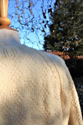 The pattern is written for a knitter who is able to follow charts, written instructions, make increases and decreases, pick up stitches and work in the round. (Pattern is a combination of charts and written text).