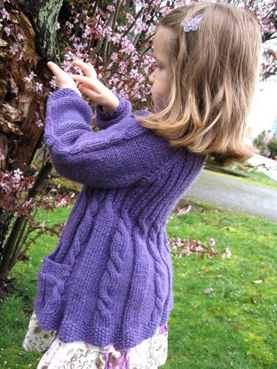 The cardigan is worked as a top down raglan and is completely seamless. Several textures are combined in this design to give the cardigan a girly, elegant, and romantic look; and as a part of the “Spice Girls" series, Lavanda has a unique spice of its own.