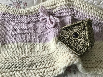 So soft, comfy, warm and woolly for your little one. Rustic butterfly motif. Fits any decor in any room. Simple knitting stitches throughout.