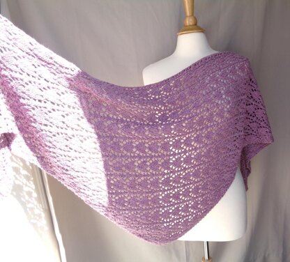Shawl is knit sidewise from end to end, with the bottom edge shaped by increases and decreases