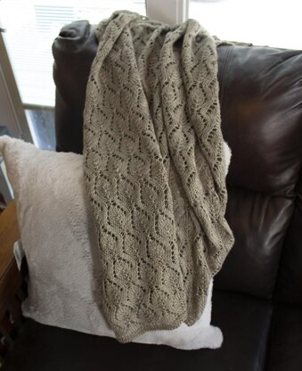 This blanket was designed in a fingering weight yarn to create a light and airy blanket. The leaf motif reminds me of birth and life, and I thought it was perfect for any little one in your life.